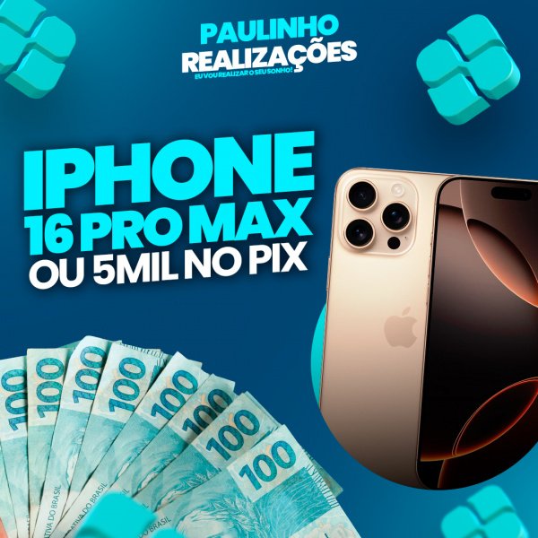 1º Prêmio 📱 IPHONE 16 PRO MAX LACRADO OU R$5.000,00 no Seu Pix 💰
